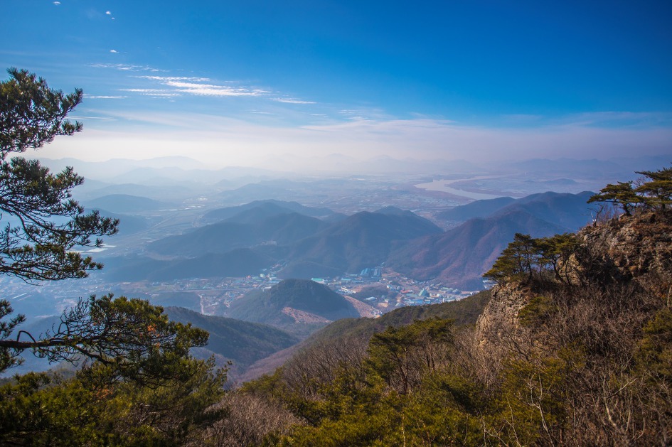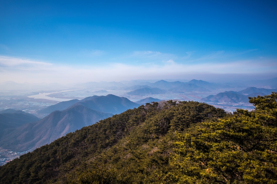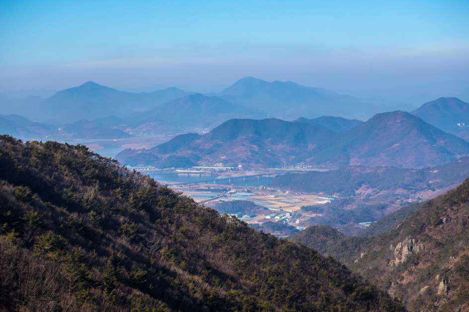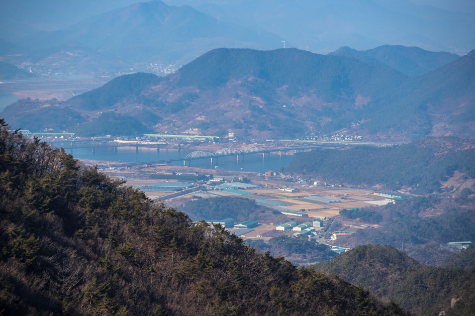 ▼ 멀리 희미하게 무척산 정상인 신선봉이 보인다.