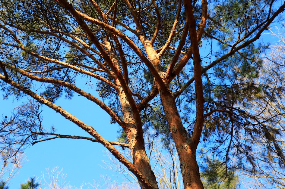 ▼ 하산길에 나타난 부부소나무...알고 보니 두소나무의 가지가 중간쯤에 서로 붙어 연리지가 되었다.