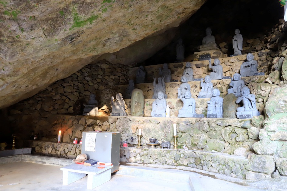 ▼ 암석이 많다 보니 통천문과 같이 뚫린 굴도 있지만 막힌 굴도 있어 이렇게 십육나한이 모셔져 있는 기도처가 따로 있다.
