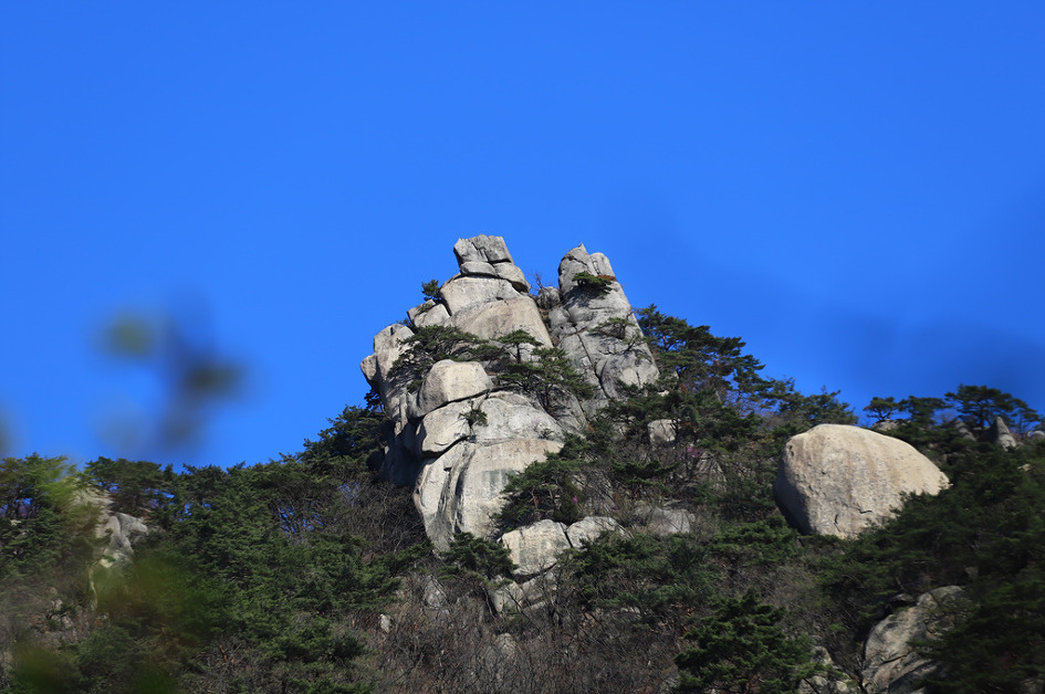 ▼ 당겨 본 맨 꼭대기에 살짝 보이는 안장바위
