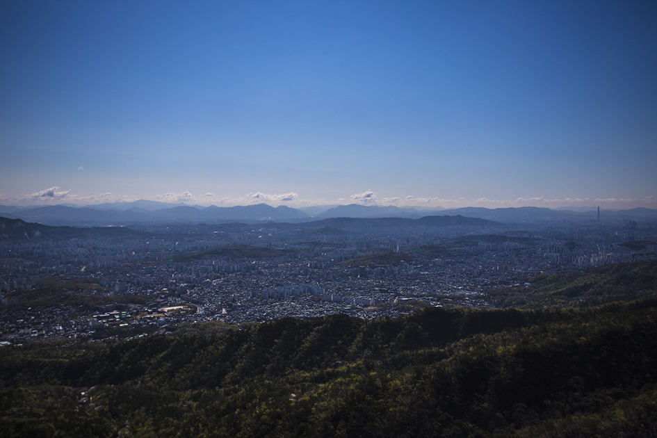▼ 송파구에 있는 롯데월드타워 오른쪽 멀리 관악산이 살짝 보인다.