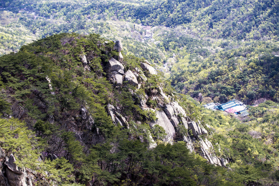 ▼ 당겨 본 만경대...이곳에서 보는 풍경은 마치 만물상을 보는 듯 바위 모습이 다양하다.