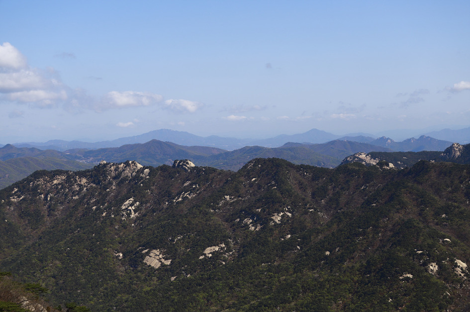 ▼ 용암봉에 올라서 바라본 북쪽 방향의 만경대 모습