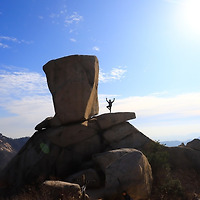 ▼ 드디어 안장바위에 올랐다. 얼마나 올라 탔으면 바위가 반들반들하다. 그냥 올라타면 될 것 같아도 발 디딜만한 곳도 마땅치 않고 양쪽으로는 절벽이기에 실제 승마 거부하는 말에 올라탈 용기는 있어야겠다.