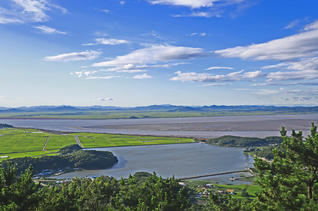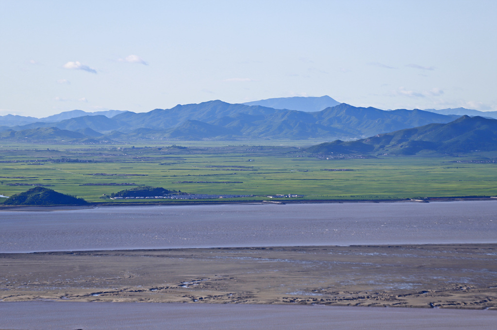 ▼ 바다 가운데는 엄청난 면적의 갯벌이 형성되어 있다. 바다의 폭은 위치에 따라 다를 수 밖에 없는데 사리때의 간조시에는 바닷 길이 양분되어 바다폭이 상당히 줄어든다. 이러한 지리상의 잇점과 썰물, 밀물의 흐름을 이용, 부유물을 사용하여 탈북하는 사례가 있어 왔다.