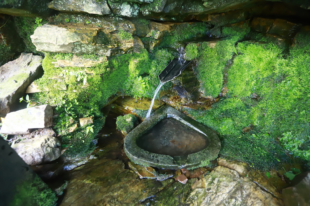 ▼ 얼마만큼의 세월이 흘렀을까...약수터는 수십년이 지난 지금까지도 물받이 돌받침이 놓여져 있는 것 말고는 원형 그대로 보존되어 변함없이 약수물이 흘러내린다.