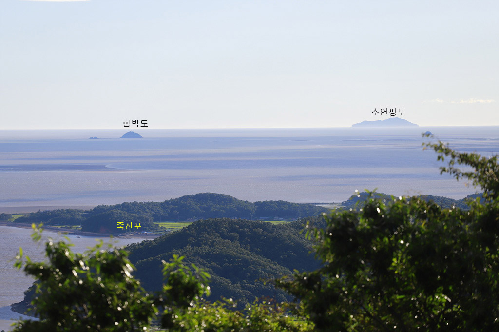 ▼ 함박도와 비슷한 위도상에 있는 대연평도와 이곳 정상과의 거리는 이곳 정상에서 약 51km 정도이다.