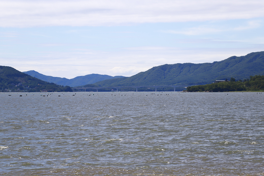 ▼ 월선포에서 바라 본 강화도와 석모도를 연결한 석모대교