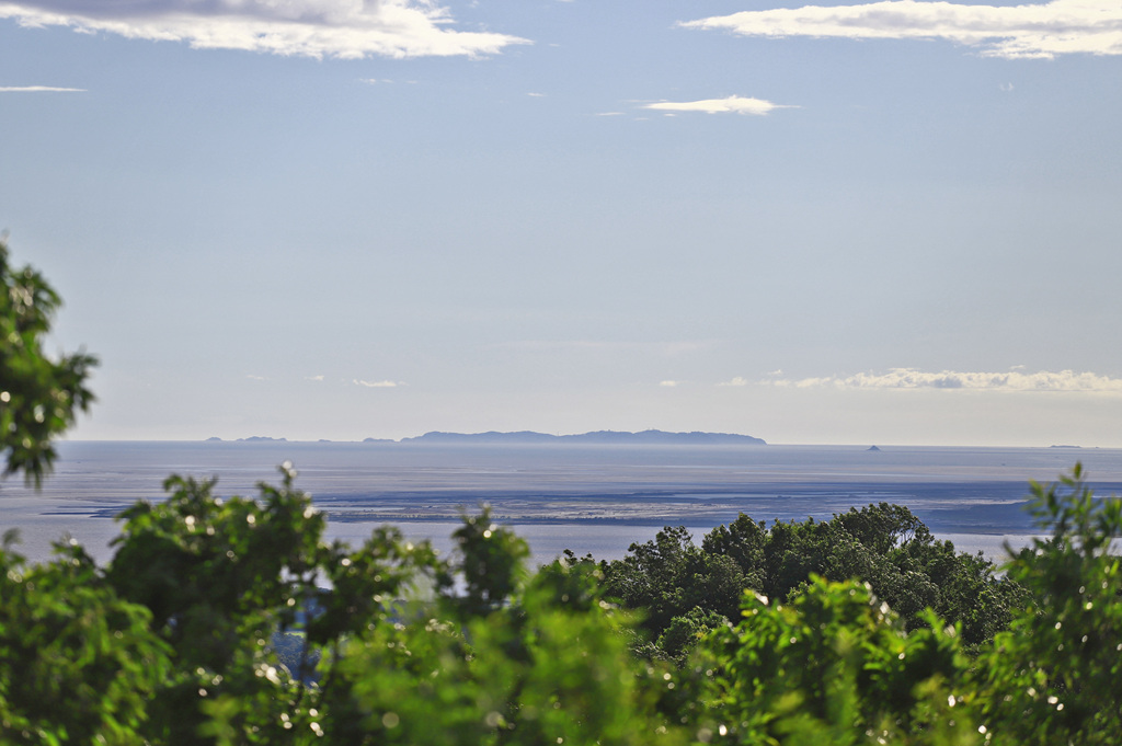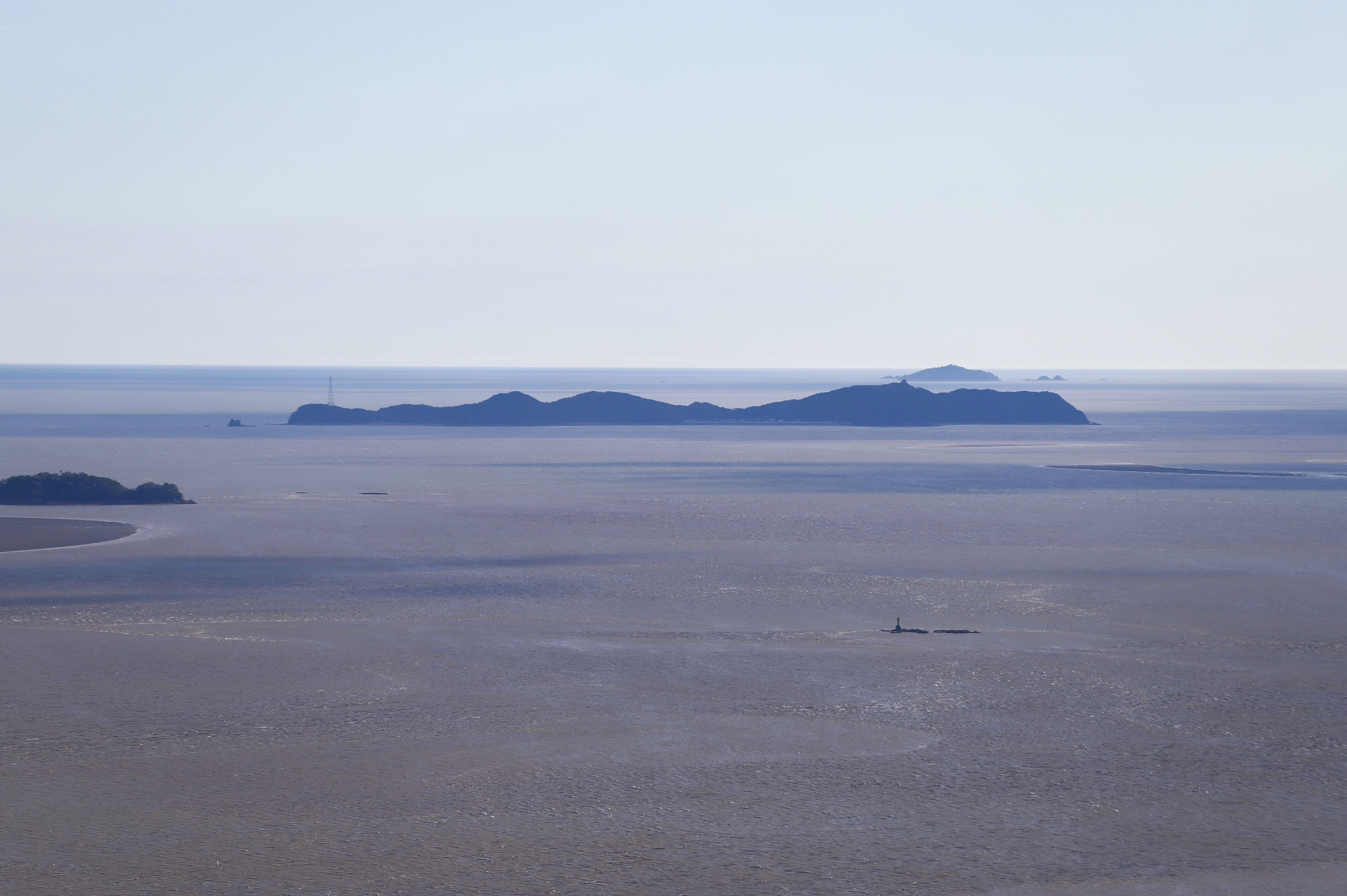 덕적도 국수봉의 통신탑이 희미하게 보이고 그 앞쪽을 주문도와 석모도 일부가 담겼다. 덕적도는 이곳 정상과의 거리가 북한산과의 같은 거리인 약 60km이다.