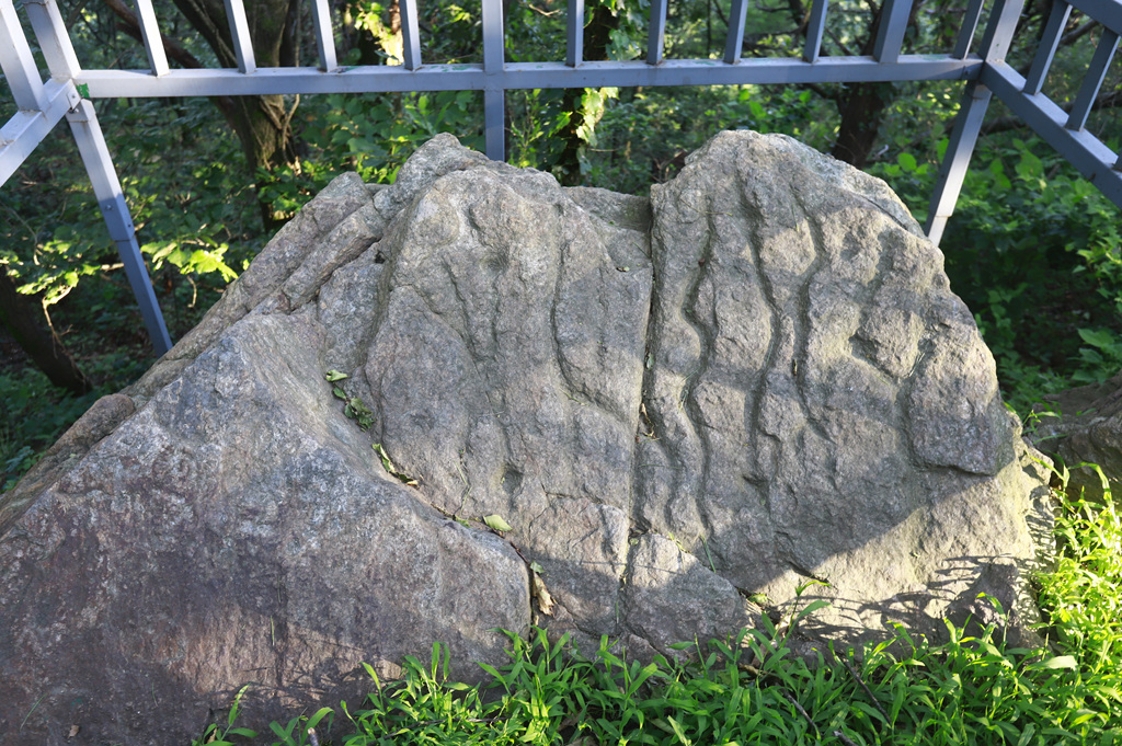 ▼ 정상에서의 조망을 끝내고 하산길에 청동기 시대의 암각화로 추정하는 문화재를 마주해 보고...