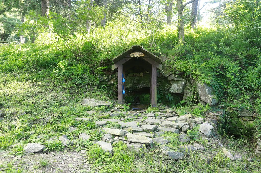 ▼ 화개산의 화개산성은 세종실록에도 수축근거가 있어 그 이전에 쌓은 것으로 추정되며 군사들이 이 약수물을 사용한 것으로 본다. 신기하게도 8부 능선에서 가뭄에도 마르지 않은 이 약수는 위장병에도 좋다하여 많은 이들이 찾곤 하였다.