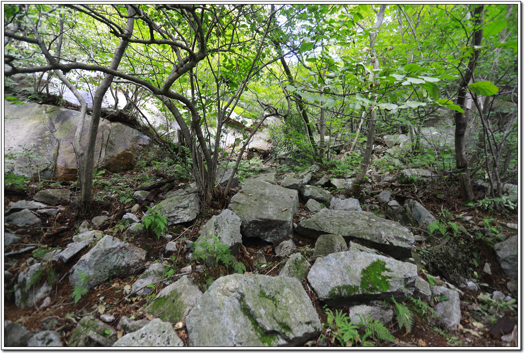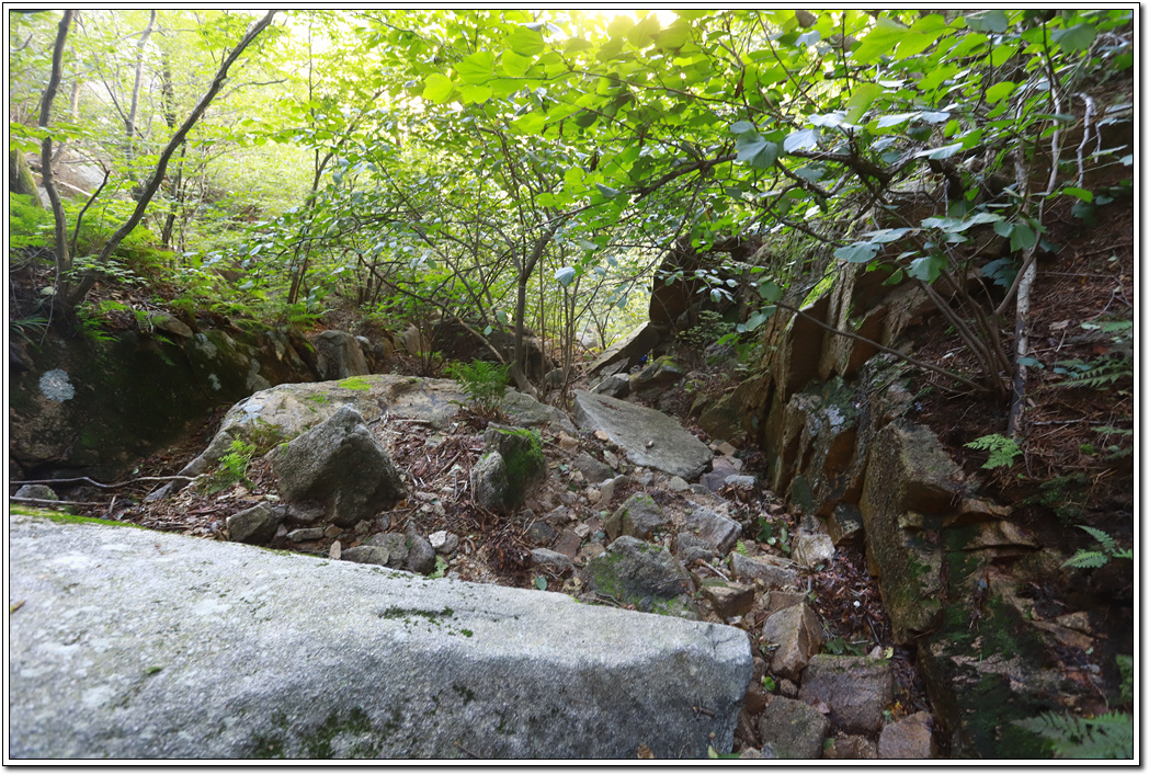 ▼ 이쪽 바람골도 하산길이 영 된비알이다. 길이 없다고 해도 과언이 아니다. 긴 장마에 태풍이 세번이나 지나갔으니 폭우로 인해 계곡길들이 엉망으로 변해 버렸다.
