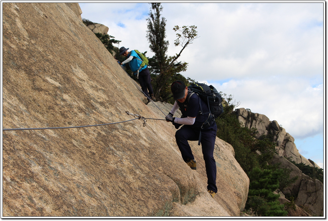 ▼ 악어새바위를 오르는 일은 꽤 경사도가 있는 릿지가 부담이다. (도솔님 作)