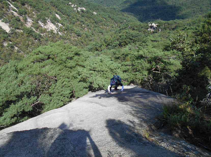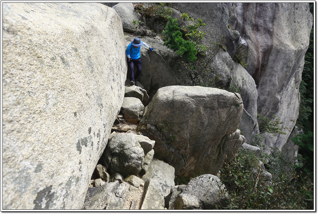 ▼ 사진에서 보다 실제 위에 올라서면 천길 낭떠러지라 오금이 저린다. 그러면서도 느끼는 카타르시즘으로 이러한 산행을 즐기는가 보다.