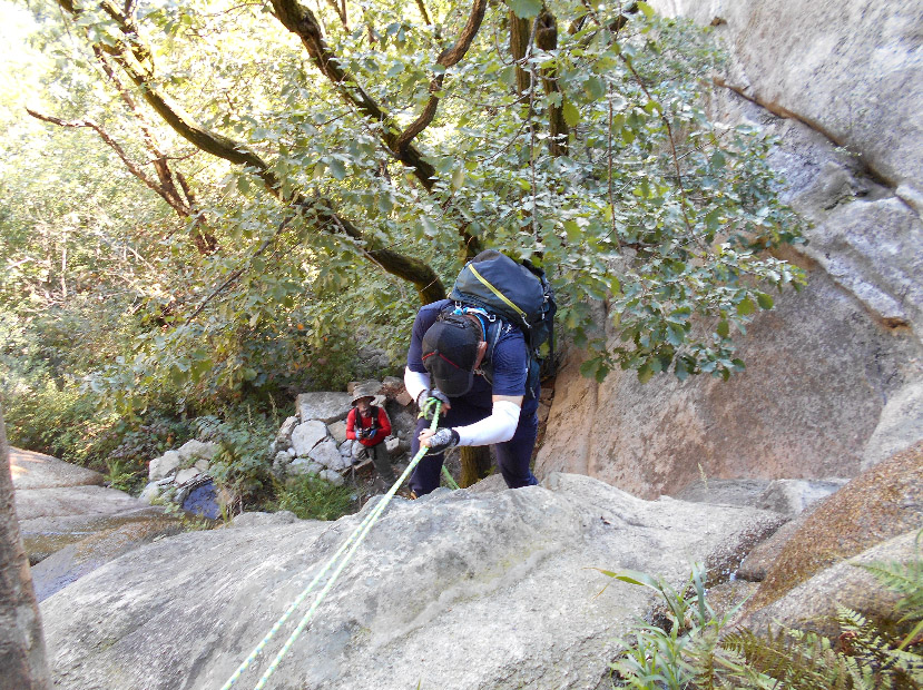 ▼ 막바지 지점에서 비가 온 관계로 미끄러워 릿지가 되지 않아 즐풍님이 준비해 온 로프를 이용, 하강한다.