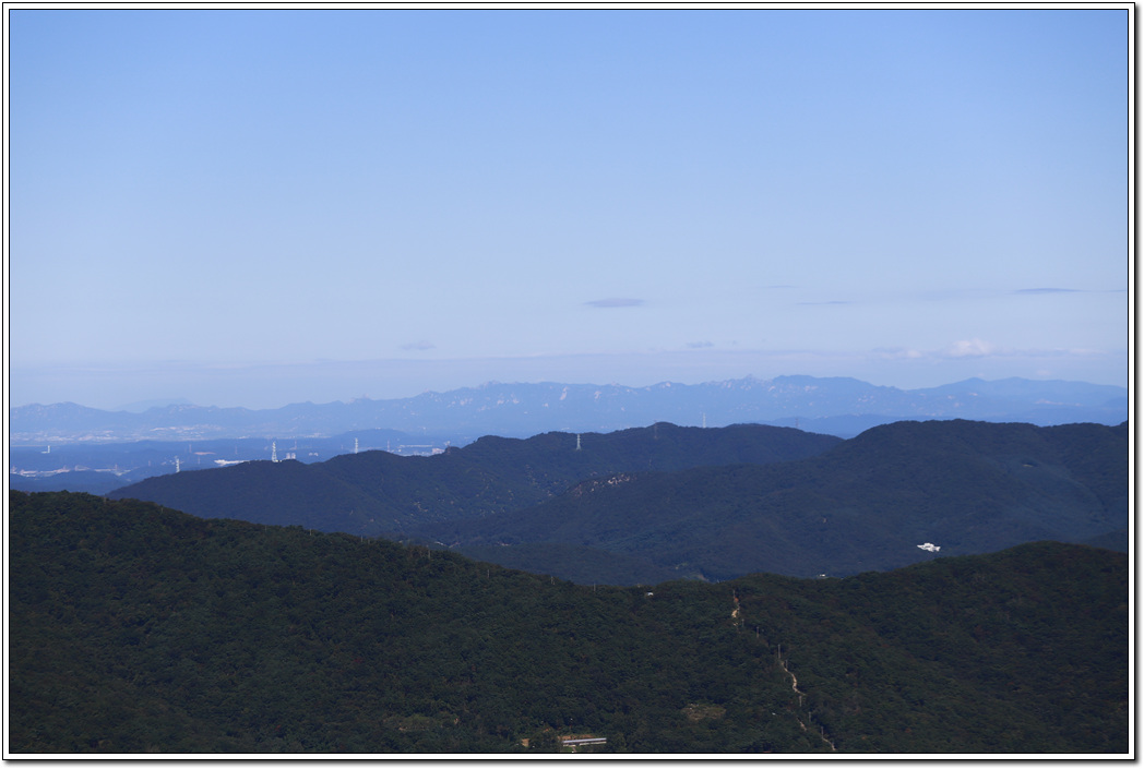 ▼ 도봉산 능선 사이로 멀리 포천의 명성산이 보이고...