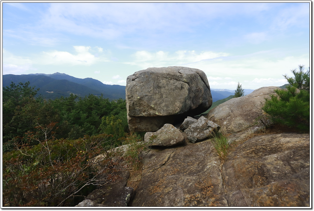 ▼ 살짝 밀면 굴러 내릴 듯이 덩그러니 놓여 있는 되바위...