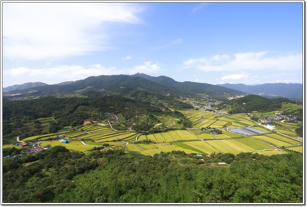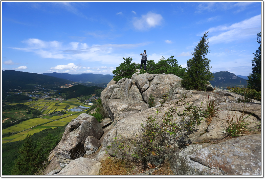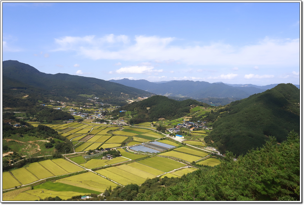 아직 단풍은 들지 않았지만 황금물결의 들판과 주변 풍경이 좋은 산이다. 특히 합천호와 북쪽 멀리 펼쳐지는 조망은 인상 깊다. 앞으로 파란 하늘과 오색의 단풍이 펼쳐질 가을 산행을 기대해 본다.