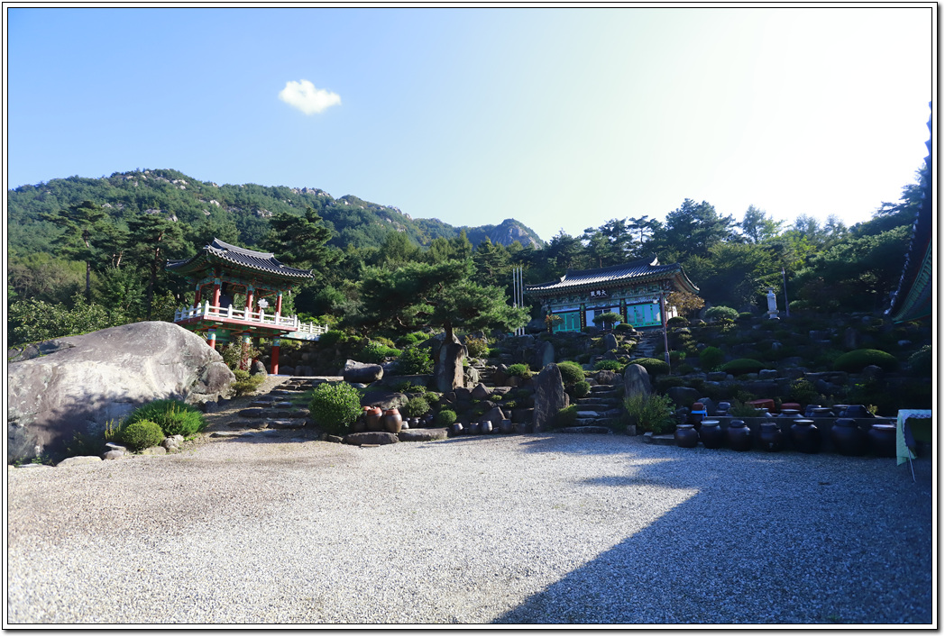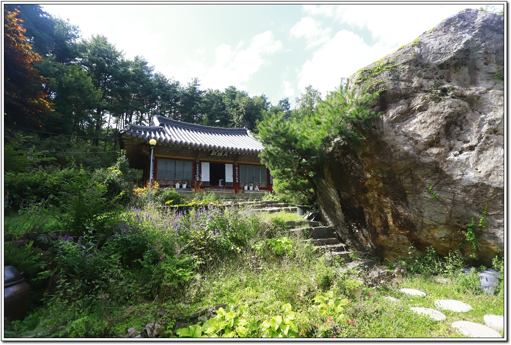 ▼ 바위를 돌아 위치한 대웅전...주변이 잡초제거가 되어 있질 않아 다소 어수선한 분위기다.