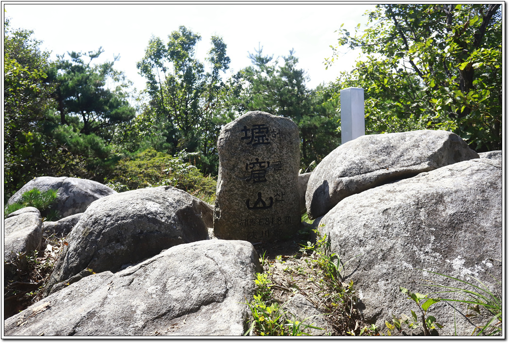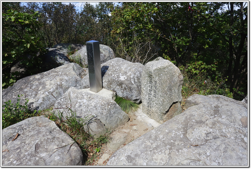 ▼ 정상석이 놓여있긴 하지만 봉수대가 높으므로 사실상의 정상은 봉수대일 듯 싶다. 다만, 정상석을 놓을만한 공간이 마땅치 않아 안전상 문제로 이곳에 놓여진 것으로 보인다.