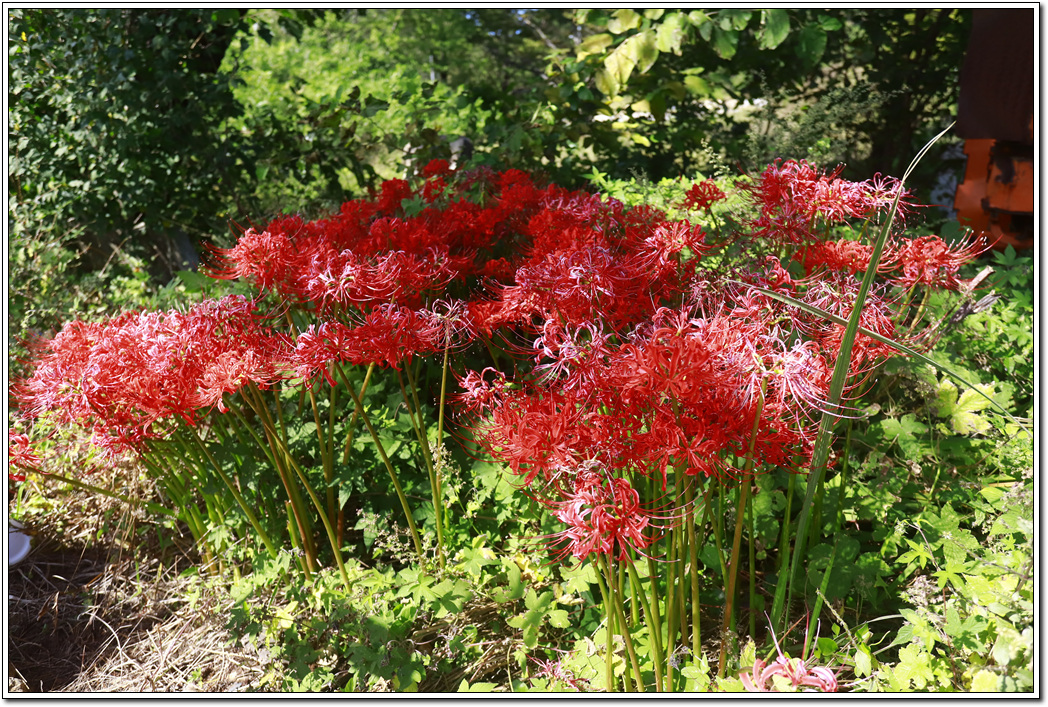 ▼ 석산(이명: 꽃무릇)이 만개했다. 상사화로도 불리고 있으나 상사화라는 이름은 따로 있다. 잎이 지고 난 다음에 피기 때문에 잎과 꽃이 만나는 일이 없어 상사화라 부르기도 하는데 불갑사, 선원사의 석산이 장관을 이룰 시기다.