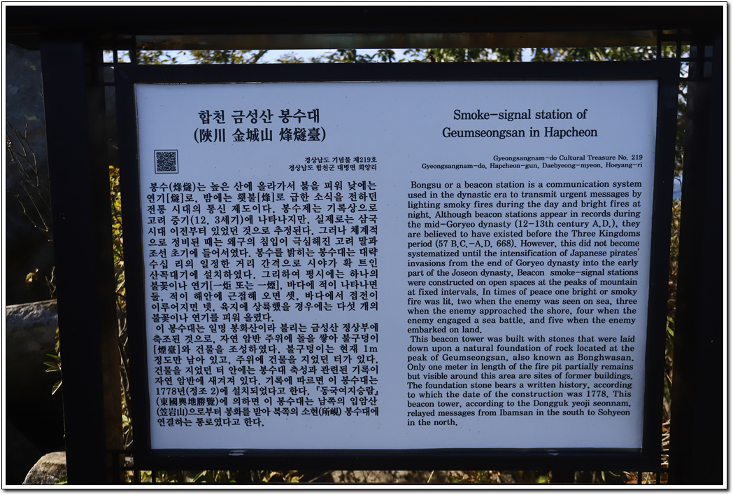 ▼ 봉수대 안내문이 세워져 있고...