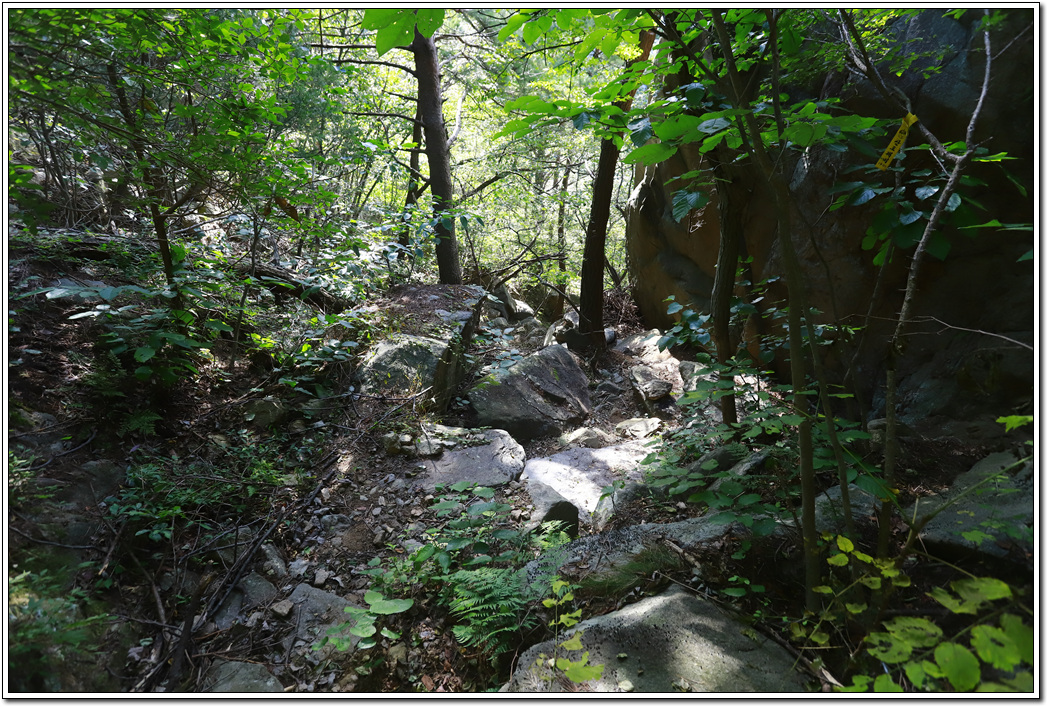 ▼ 올려다 본 정상방향의 암릉도 멋드러져 보인다.