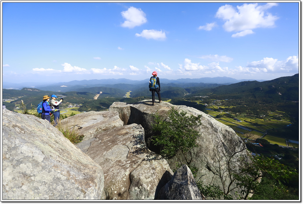 ▼ 남쪽으로 탁 트인 전망이 보기 좋게 펼쳐진다. 너도나도 이곳에서 위험을 무릅쓰고 인증을 하느라 여념이 없다.