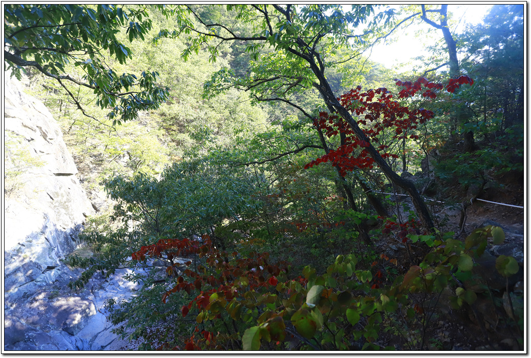 ▼ 천태호에서 가파른 길을 조금 내려오다 보면 용연폭포 상단을 만나게 되고...