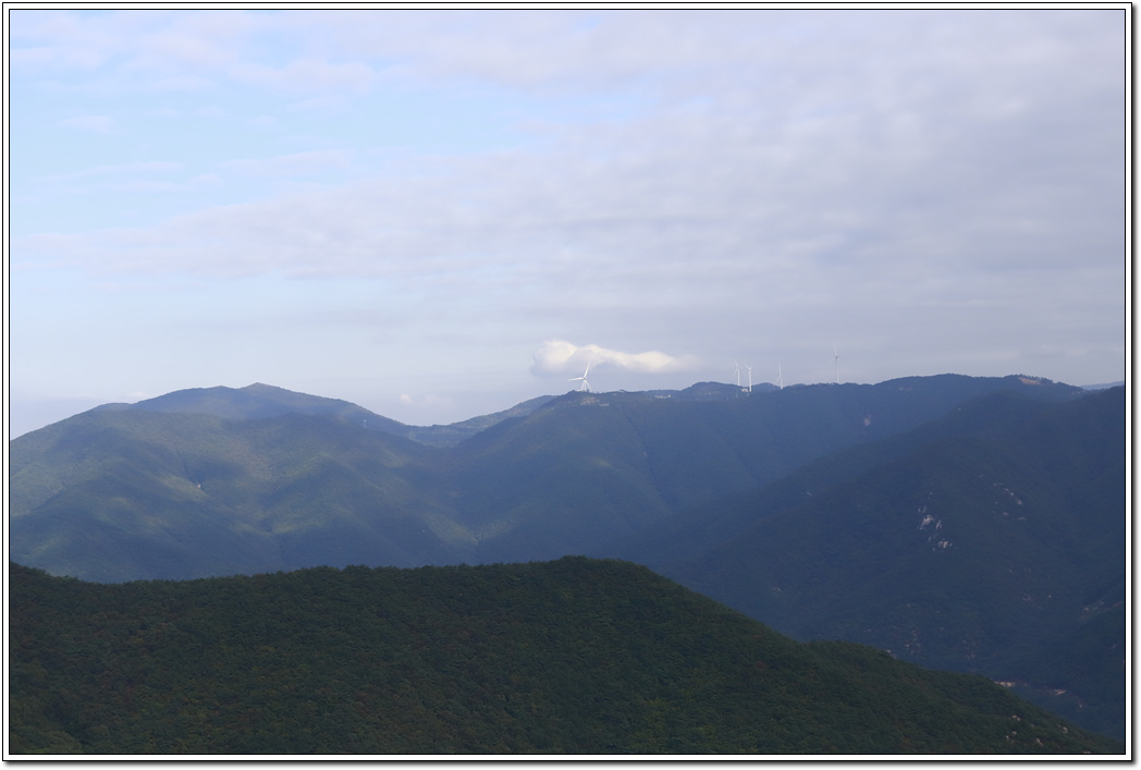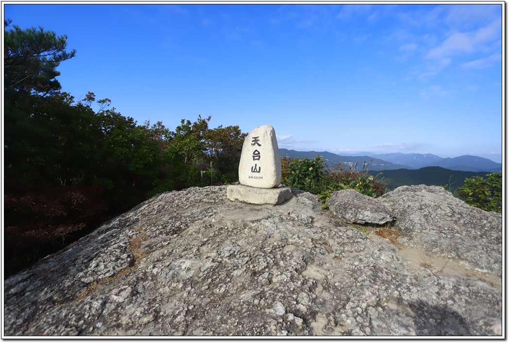 ▼ 천태산 정상에 올랐다. 두시간 전까지만 해도 흐렸던 날씨가 개이면서 파란 하늘이 보기 좋다.