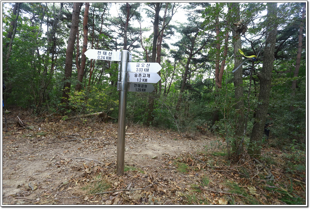 밀양시와 양산시의 경계에 있는 금오산과 천태산은 솔직히 볼거리가 없다. 그나마 관광화된 천태호와 천태사가 있어서 잠시 둘러보긴 했지만 두번 가게 되는 산은 아닌 것 같다. 다만, 정상에서 보는 탁트인 조망이 일품이다. 날씨만 좀 더 좋았더라면 하는 아쉬움은 있지만 그런대로 만족스런 날씨이기도 하다. 아직 단풍이 들지 않은 계절이라 10월말, 11월 초가 되면 우리나라 어느 산이든 단풍을 즐길 수 있으므로 시간되는대로 가까운 근교 산행이라도 하면서 쉬이 가는 가을 분위기를 즐겨야겠다.