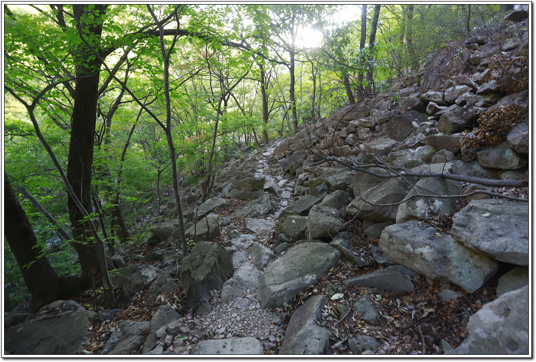 ▼ 너덜길을 지나 한적한 곳에서 간단히 몸을 씻고나니 하산 시간인 17시가 다 되어 간다.