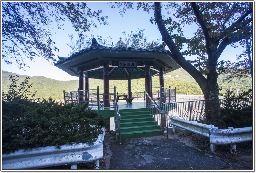 ▼ 천태공원에서 약 1km 지점에 쉬어갈만한 천태정이 그림같이 세워져 있다.