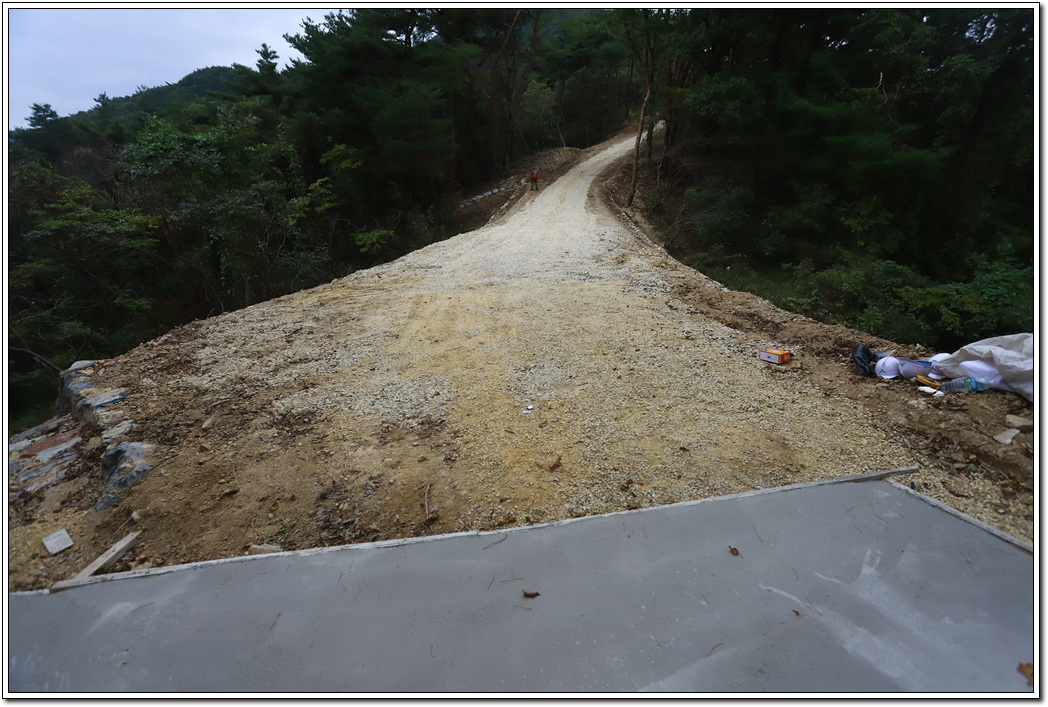 ▼ 40여 분 만에 오른 당고개...임도를 시멘트 포장하느라 얼마 전 오름길에 공사를 마친 듯 하다.