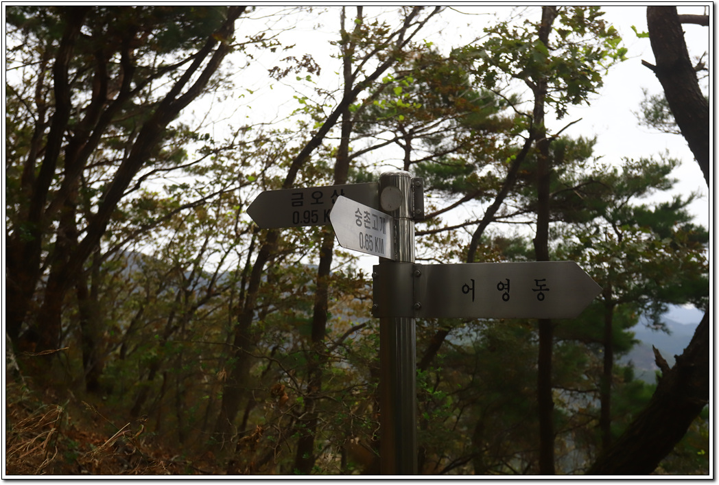 ▼ 어영마을에서 2.7km거리에 있는 금오산을 1시간 20분 만에 올랐다. 당고개에서 약 0.9km의 급경사를 오르는 일이 쉽지 않다.