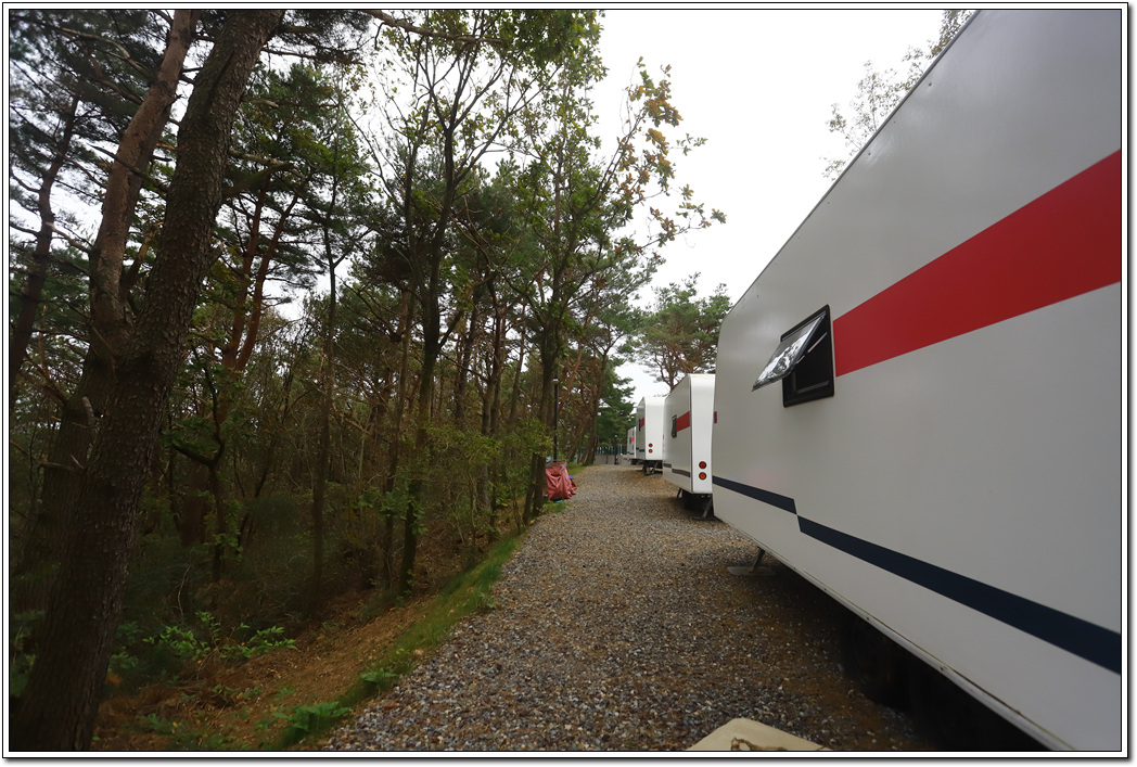 ▼ 임도로 하산하지 않고 그대로 직진하면 이와 같은 카라반 캠핑장이 나오고...