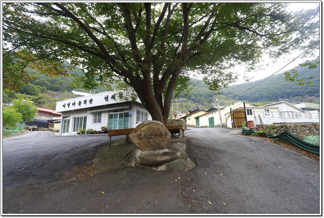 ▼ 범죄없는 마을이 당연한 것이지만 세상이 하수상하니 범죄없는 것이 자랑할 만한 세상이 됐다. 영어마을로 착각하기 쉬운 어영마을에 버스가 11:40에 도착, 산행을 시작한다.
