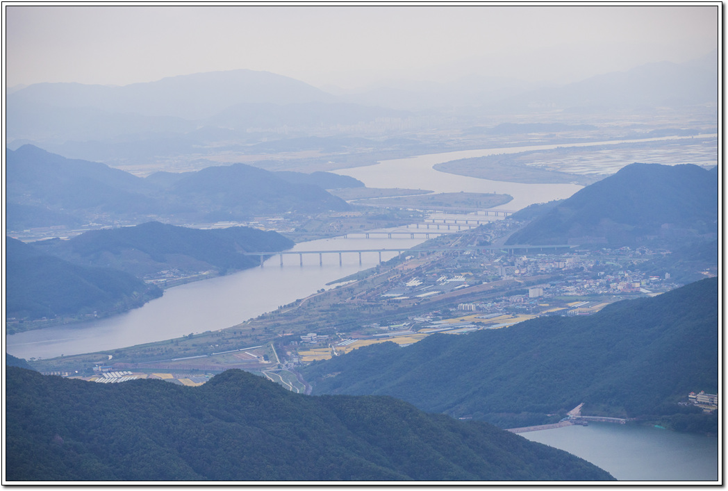 ▼ 바로 앞의 천태호와 멀리 무척산, 오른쪽으로 굽이친 낙동강과 삼량진 방향으로 보이는 풍경이 볼 수록 아름답다.