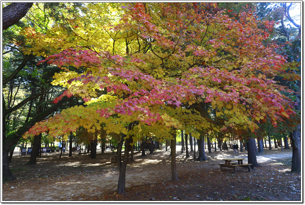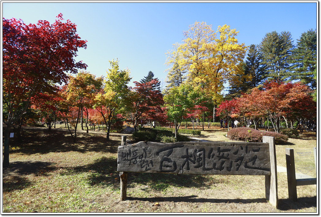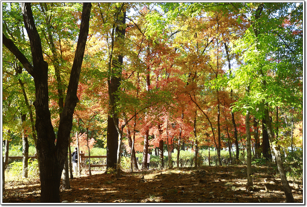▼ 남이섬의 모든 곳을 다 밟아 보고 갈 수는 없고 사진으로 담을 만한 포인트 위주로 한바퀴 돌 생각인데 먼저 단풍나무로 조성된 '백풍밀원(百楓密苑)'을 찾았다. 뜻이야 백가지의 단풍나무가 빽빽히 조성된 동산으로 붙여진 이름이겠지만 솔직히 시내 공원에 비해 별것은 없다.