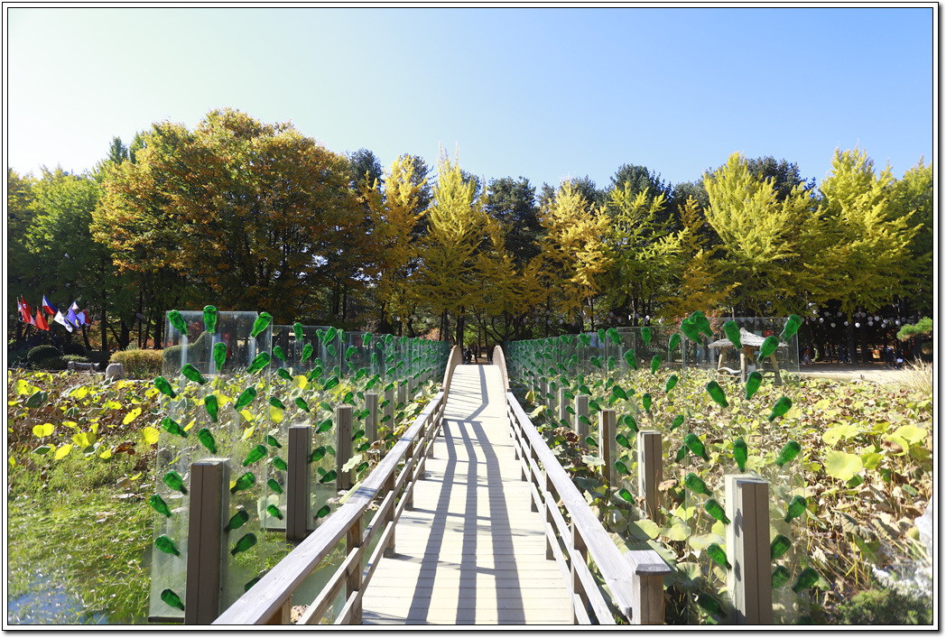 ▼ 남이섬 가운데 위치한 연못의 연과 은행나무 단풍