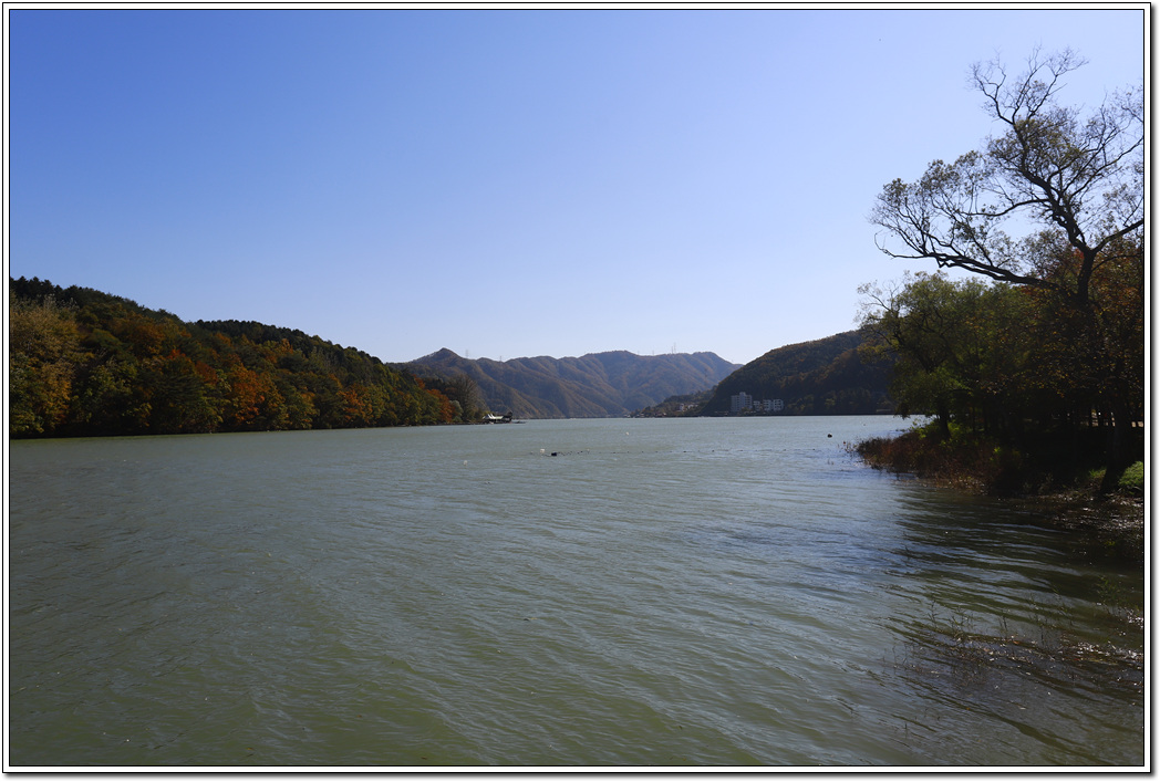 ▼ 이번엔 사람들이 덜 붐비는 강가의 데크길을 걸어 보기로 한다. 단풍이 곱게 물들고 강변의 시원한 바람이 마스크를 쓴 답답함을 잊게 한다.