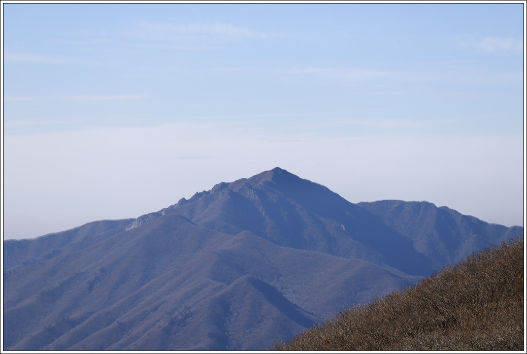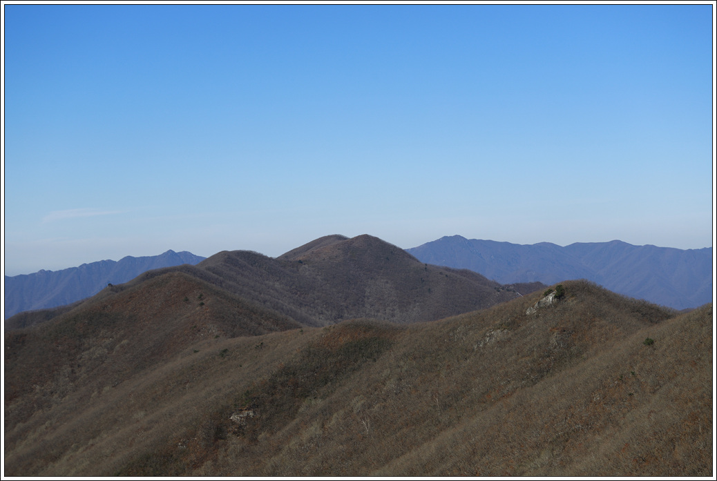 ▼ 당겨 본 끝쪽의 기백산, 장쾌해 보이는 능선이 아름답게 느껴진다.