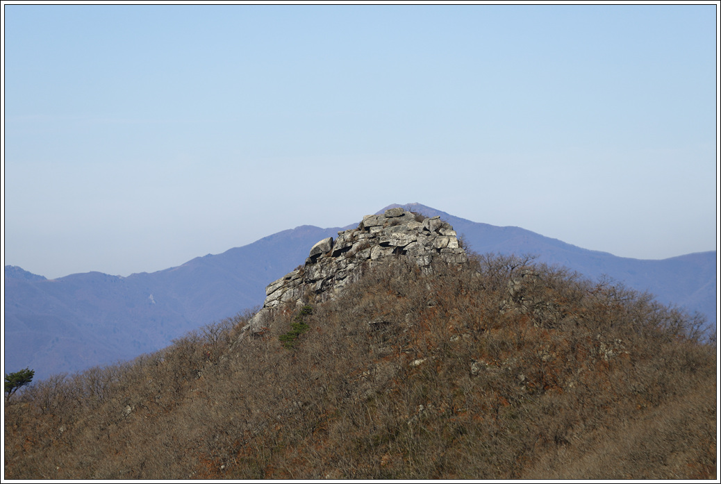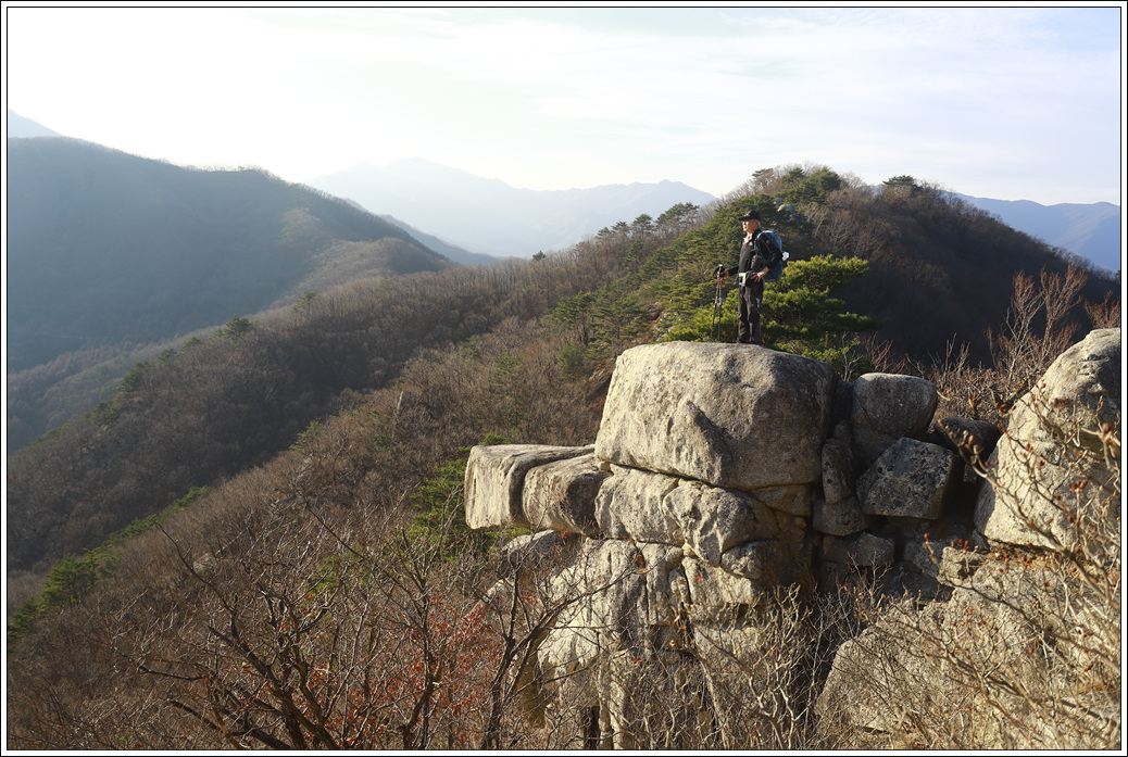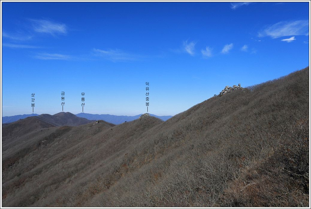 ▼ 두번째 암봉 뒤로 덕유산 중봉이 겹쳐서 언뜻 중봉을 눈치 못챌 수도 있다.
