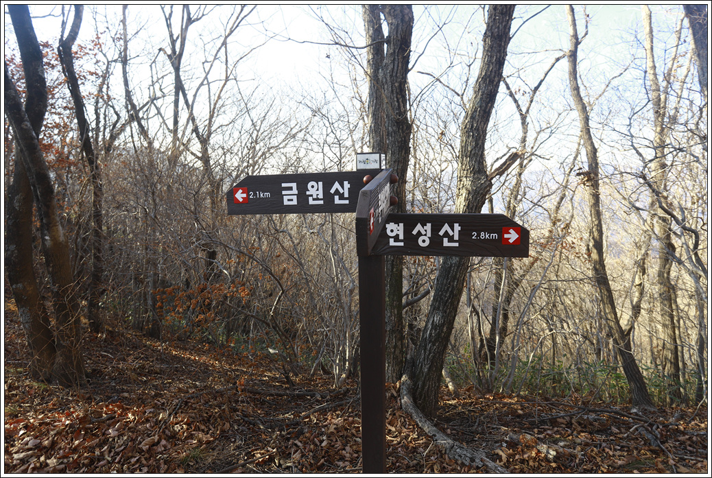 해가 짧아지면서 먼길에 당일 코스로 15km 거리를 산행하기란 그리 녹록지가 않다. 오후 5시만 되면 벌써 어둑해 지기 때문이다. 오늘은 사실 기백산에서 금원산을 오르고 하산하면 딱 맞는 거리와 시간인데 현성산까지 오르다보니 동절기에 가까운 요즘 부담스런 산행이긴 하다.