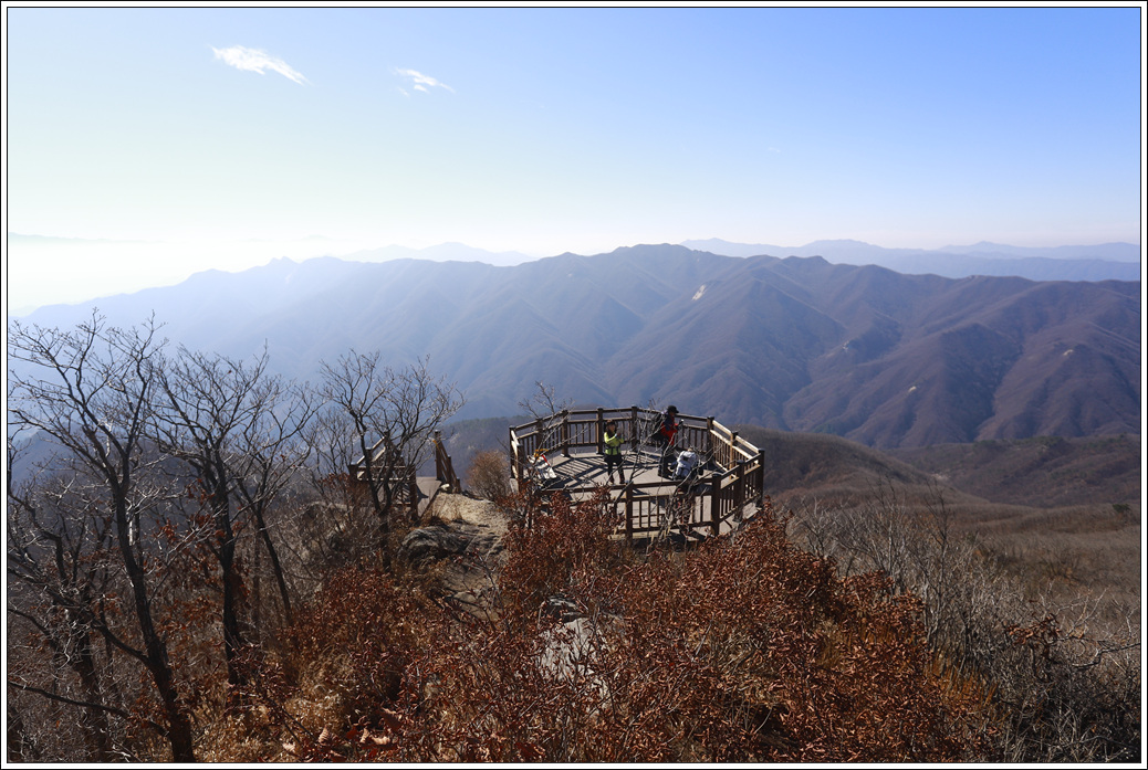 ▼ 아래서 힘들게 치고 올라와 계단을 올라설 때엔 정상인 줄 알았던 전망대다. 실제 기백산 정상은 이와 같은 조망을 하기가 어려워 이곳에 전망대를 설치 해 놓은 것 같다.