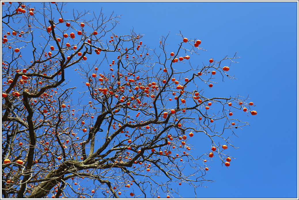 ▼ 잎은 떨어지고 홍시만 주렁주렁, 아직은 늦가을 정취를 듬뿍 느끼게 한다. 파란 하늘이 빨간 색과 대비되는 구름 한점 없는 정말 청명한 날씨다.