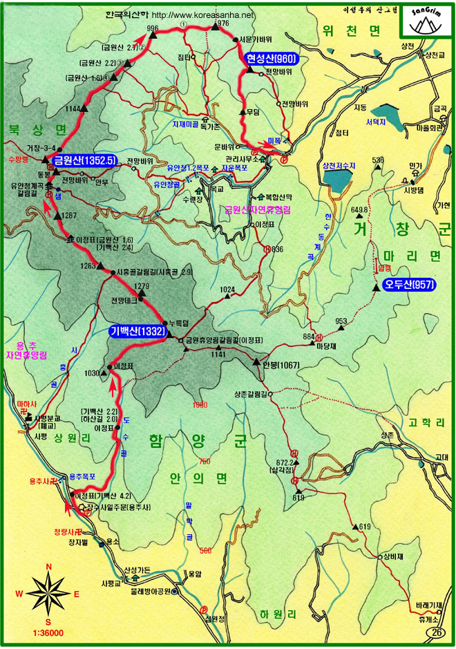 -기백산/금원산 정상-경남 함양군 안의면 상원리 산154-1