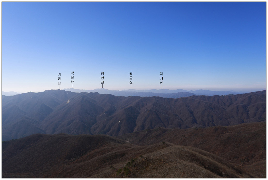 ▼ 아직 가보지 못한 장수 팔공산, 진안 덕태산... 언제 가 보게 될런지 기약이 없다. 황석산을 오르며 이곳에 관심을 두고 오른지가 4년이 넘었으니 말이다.