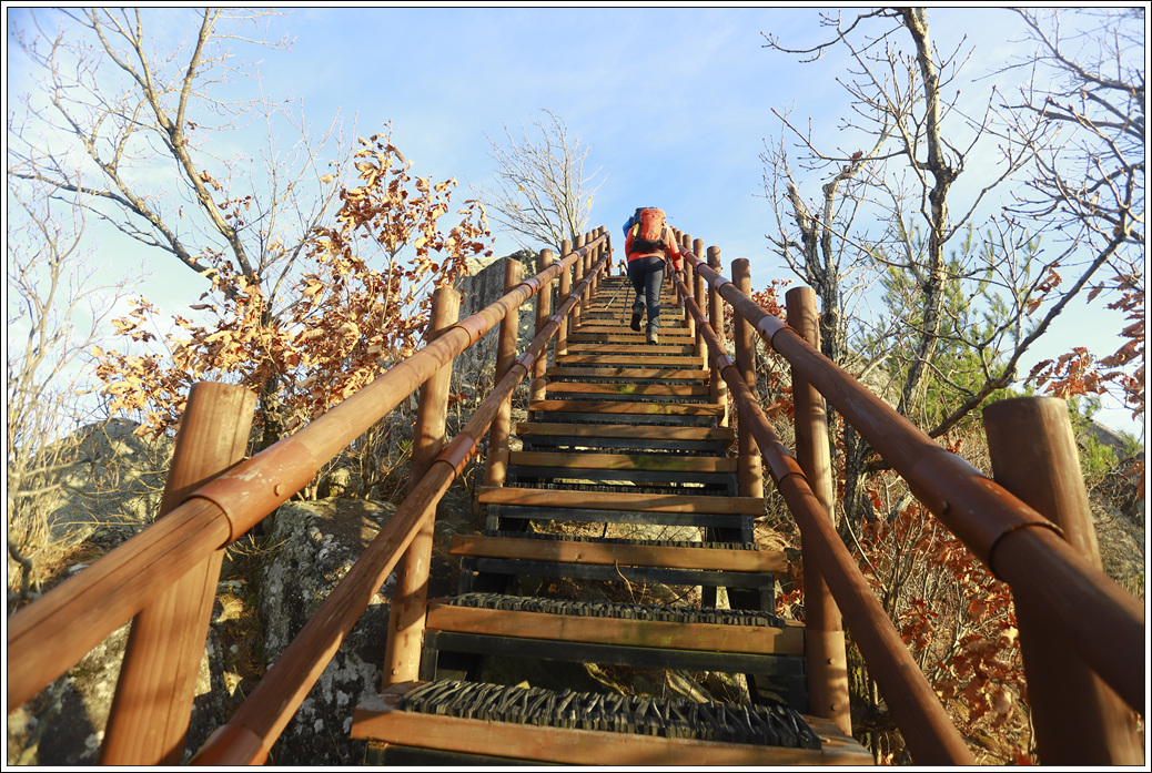 에서 올라가는 암릉 구간은 아슬아슬함과 수려한 조망 경관으로 매력적이다. 정상에