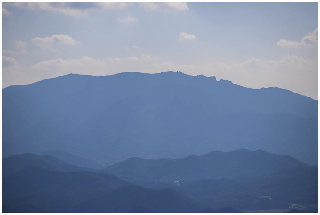 ▼ 천관산을 당겨보니 진죽봉의 바위들과 구정봉으로 이르는 능선의 암릉이 내가 그곳에 있는 듯 옛 추억에 사로 잡힌다.